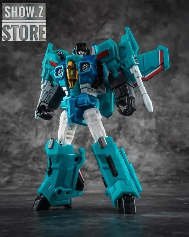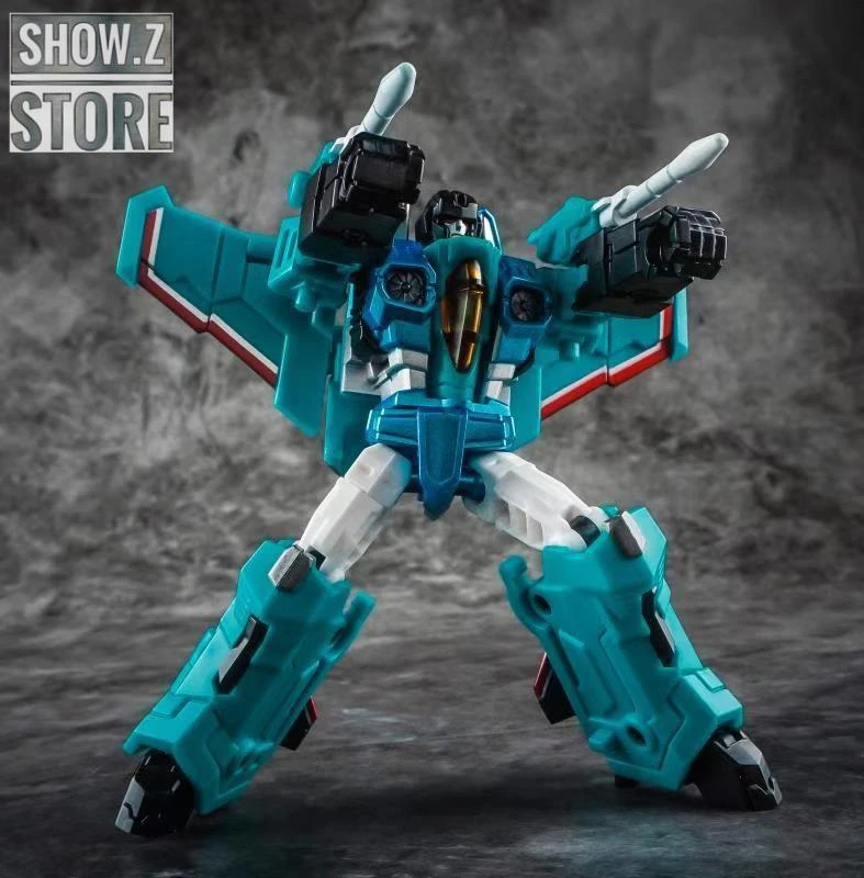 Iron Factory – Wing of Tyrant IF-EX20K Kallaite is recolored in the teale seeker jet color scheme. This figure is legends scale and transforms from seeker jet to robot and back.